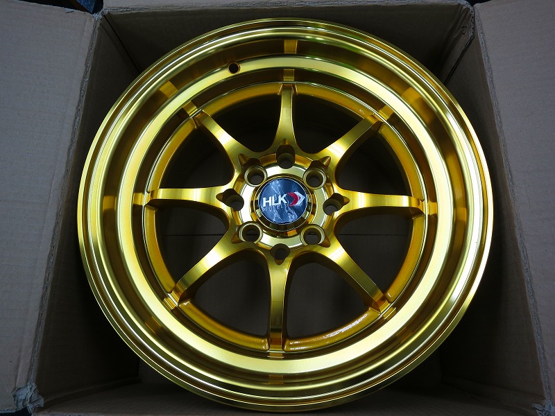 深リムのゴールドのアルミホイール PCD114.3のマルチですね。