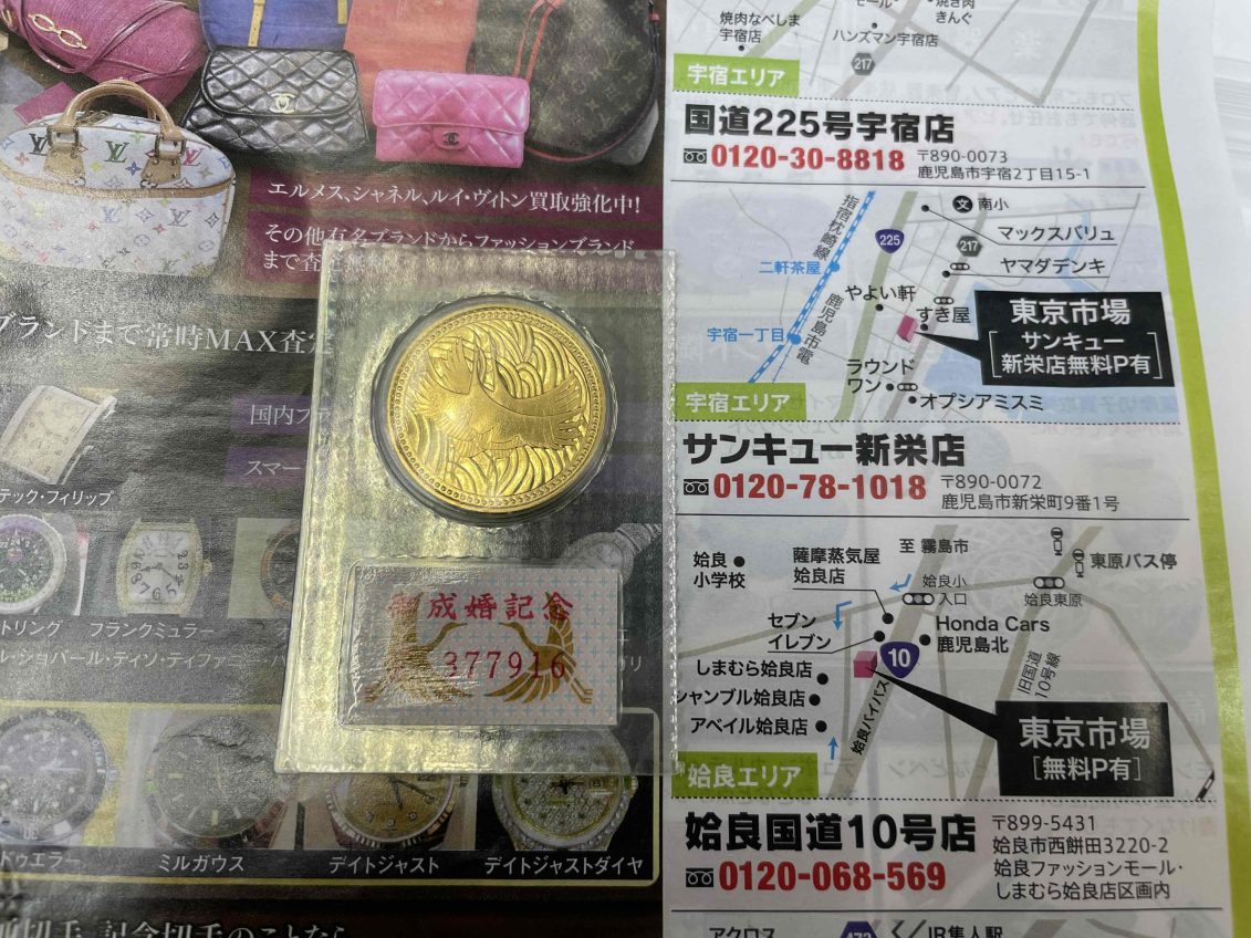 鹿児島市 買取専門 東京市場 サンキュー新栄店 金貨 皇太子殿下御成婚記念 5万円金貨 買取しました。