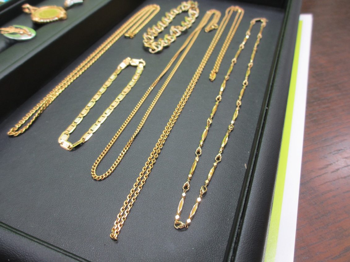 本日のご紹介は、金製品を中心としたジュエリー各種です。