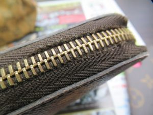の引手がちぎれており、ジッピーウォレットのほうもファスナー部分に破