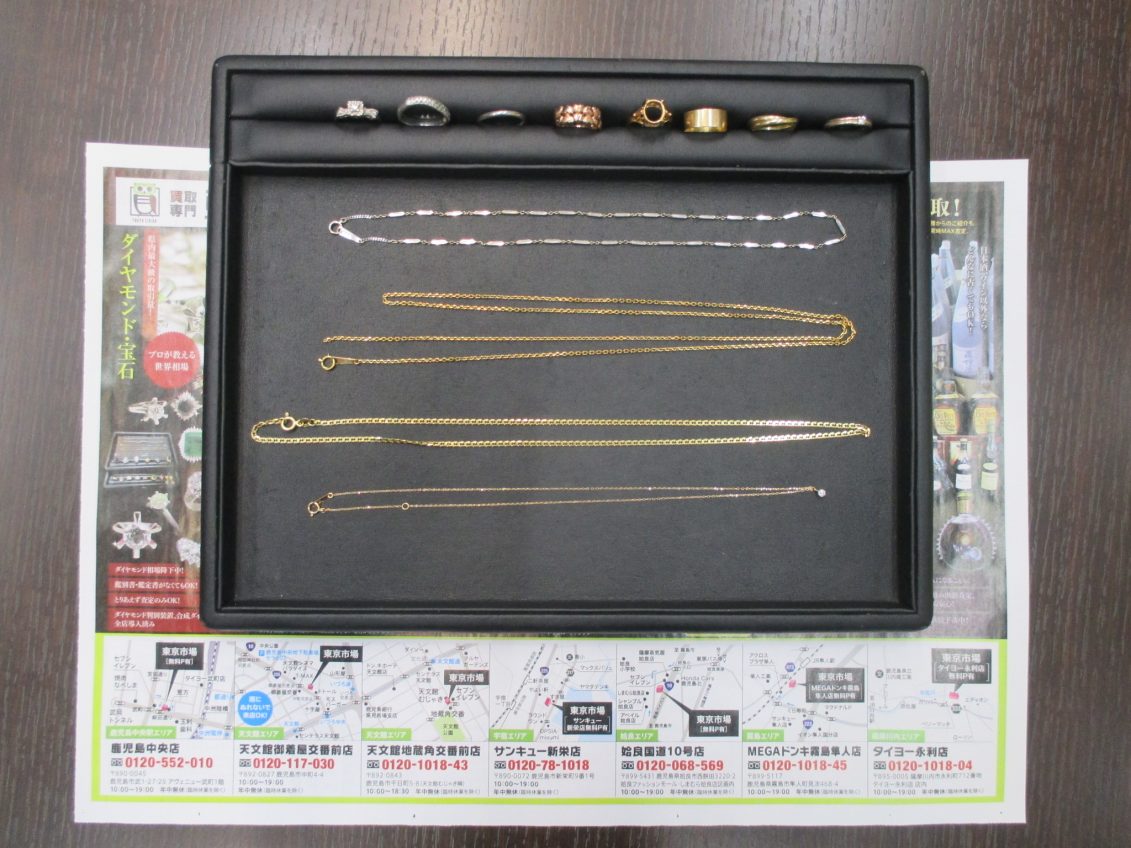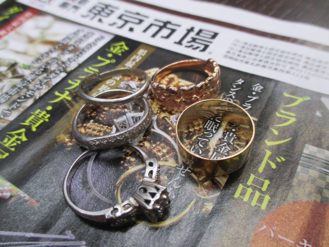 下落傾向にある金相場の影響もあり毎日のように貴金属製品を
