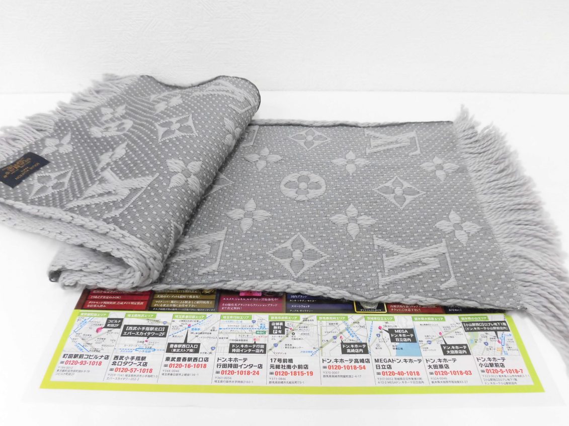 ルイヴィトン エシェルプ ロゴマニア マフラー グレー M74742