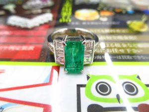 エメラルドの存在感があり、周りのメレダイヤ