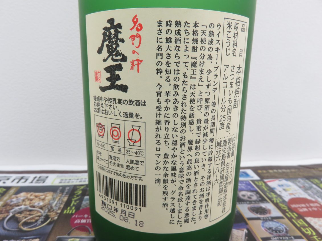 魔王は、鹿児島県肝属郡錦江町の白玉醸造が製造している芋焼酎の銘柄です。