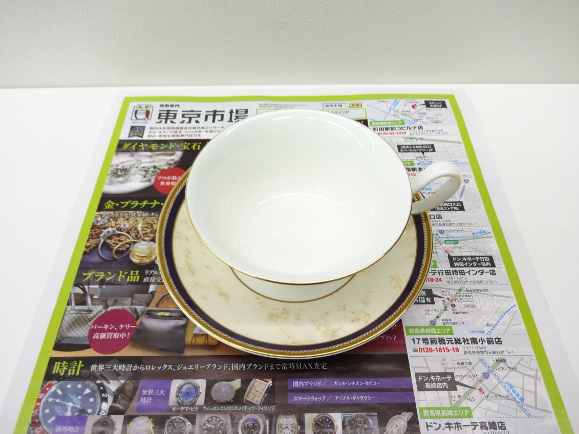 カップ上部とソーサーに施された金の模様は、