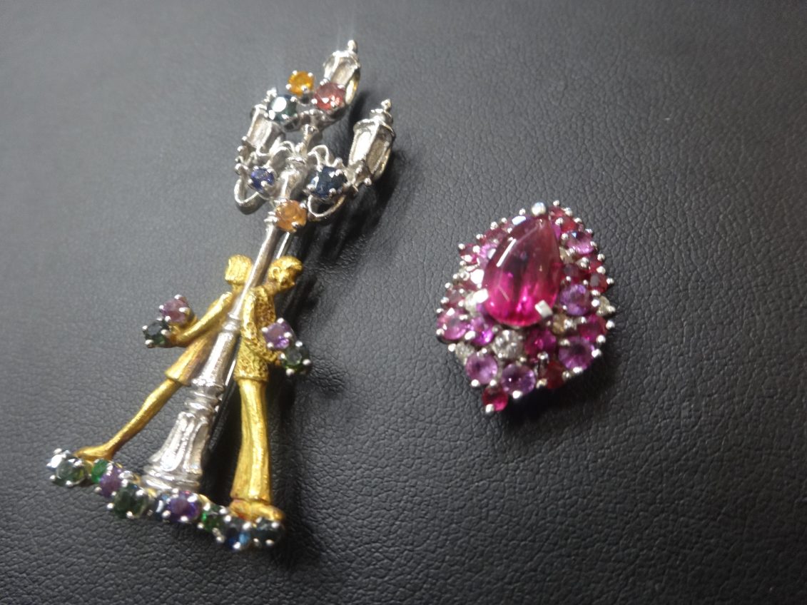 上品で存在感のあるブローチとペンダントトップで、鮮やかなジュエリー