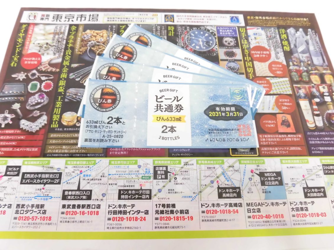 東京市場では様々な金券、商品券、切手、葉書などの買取