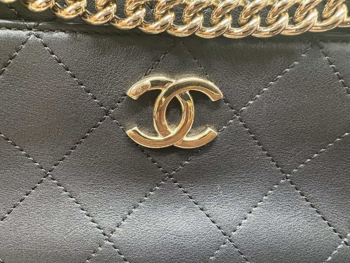 正面のココマークやマトラッセのステッチ、チェーンストラップの状態から、全体的に丁寧