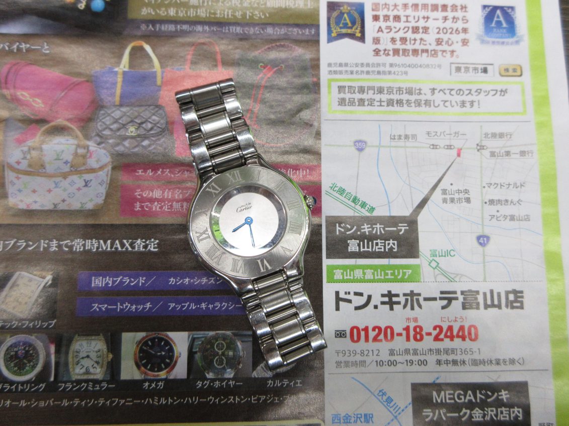 富山 高岡 射水 魚津 砺波 南砺 買取専門 東京市場 ドンキホーテ富山店 ブランド カルティエ マスト21 腕時計 買取しました。