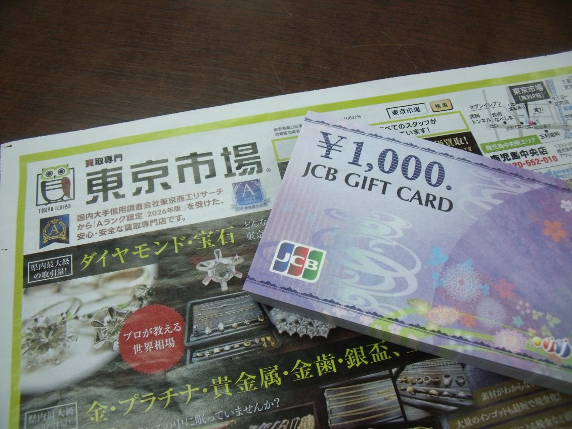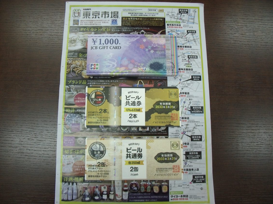 鹿児島市内 買取専門 東京市場 鹿児島中央店 金券 商品券 ギフトカード 買取しました。