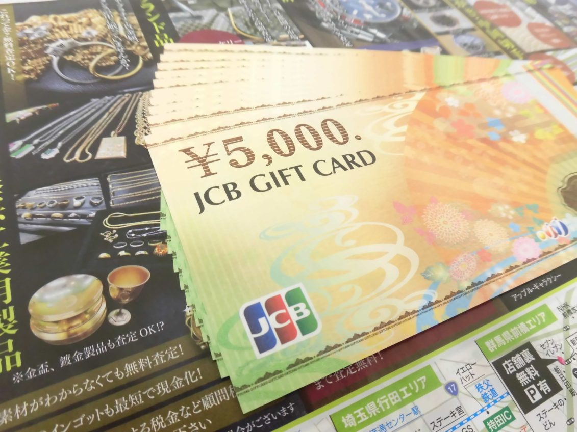 前橋市内 買取専門 東京市場 17号前橋元総社南小前店 金券 商品券 JCBギフトカード 買取しました。