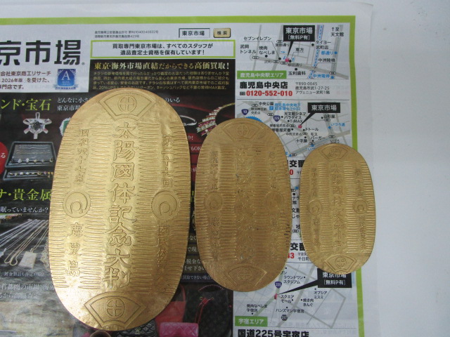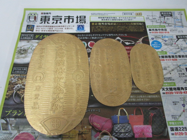 鹿児島市内 買取専門 東京市場 鹿児島中央店 貴金属 純銀 小判 買取しました。