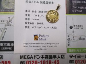 純金コインペンダントトップ。専用のブック型ケース付きです。