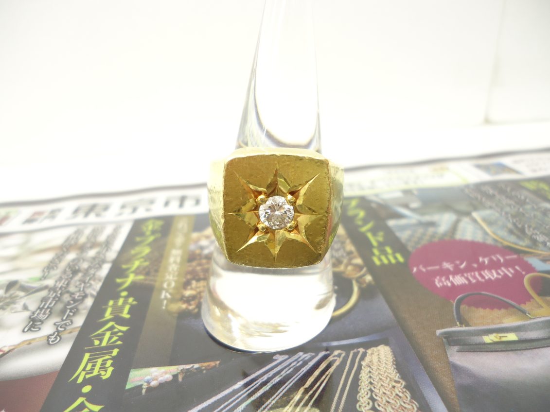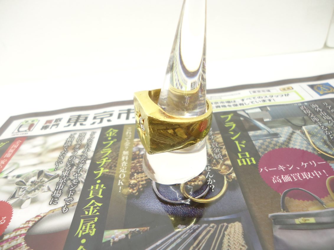 重厚感のあるダイヤ付き印台リングをお買取りさせていただきました。