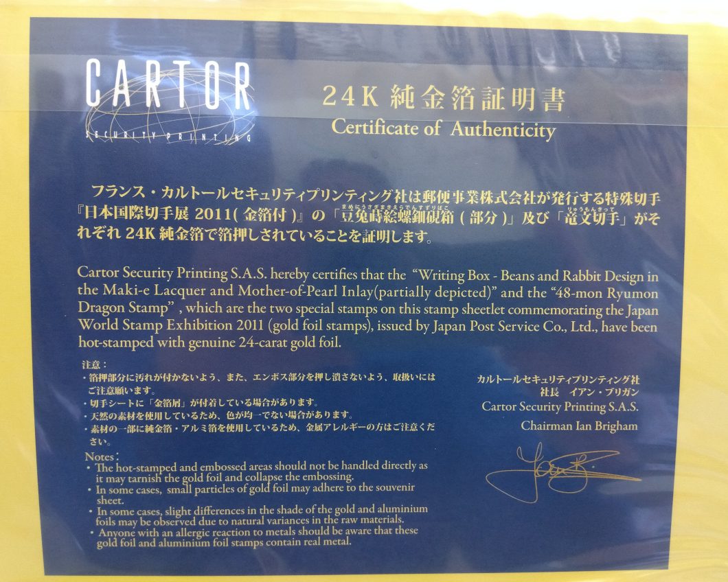 それぞれ、24K純金箔で箔押しされています。