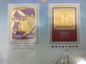 日本最初の郵便切手である「竜文切手」が意匠に取り入れられました。
