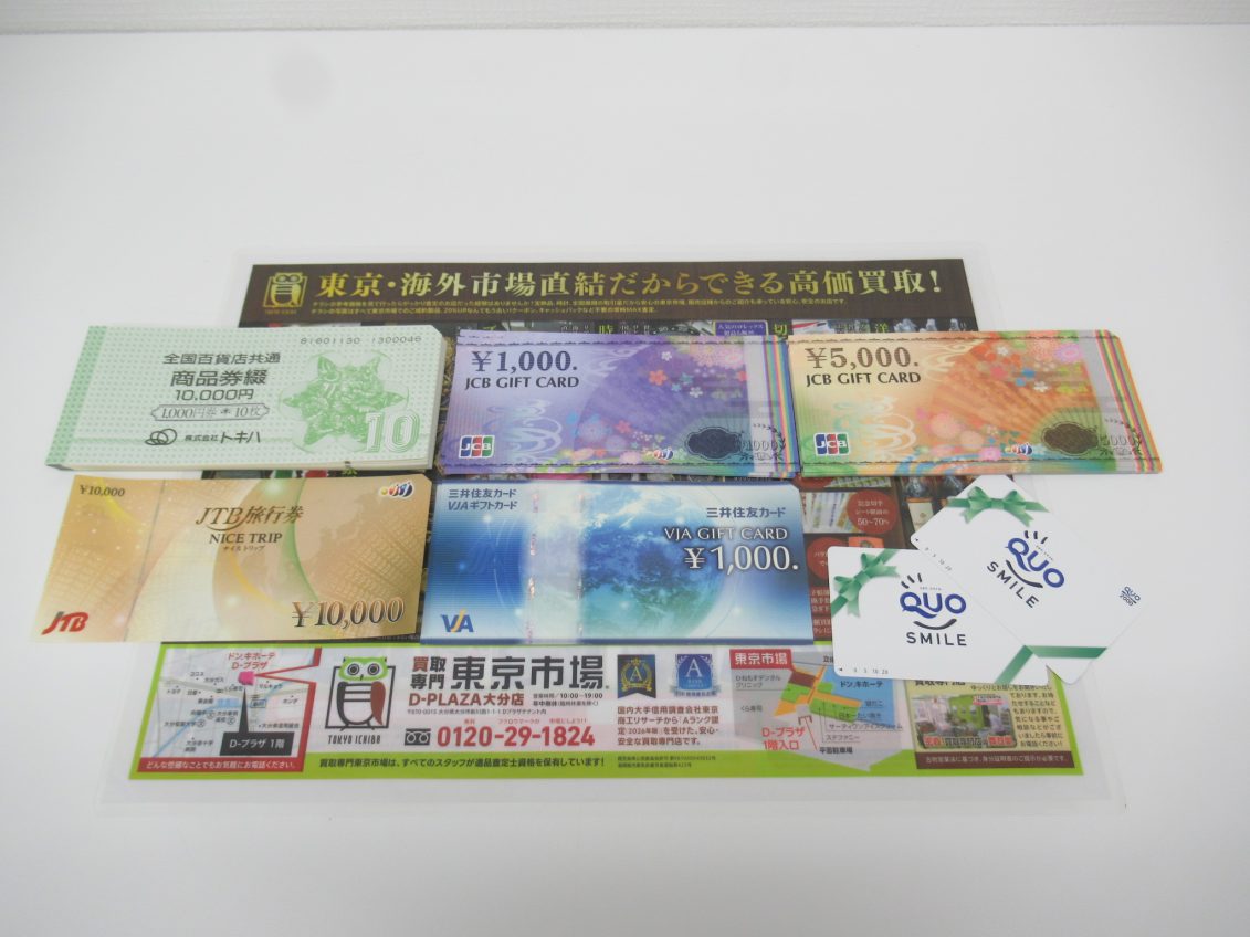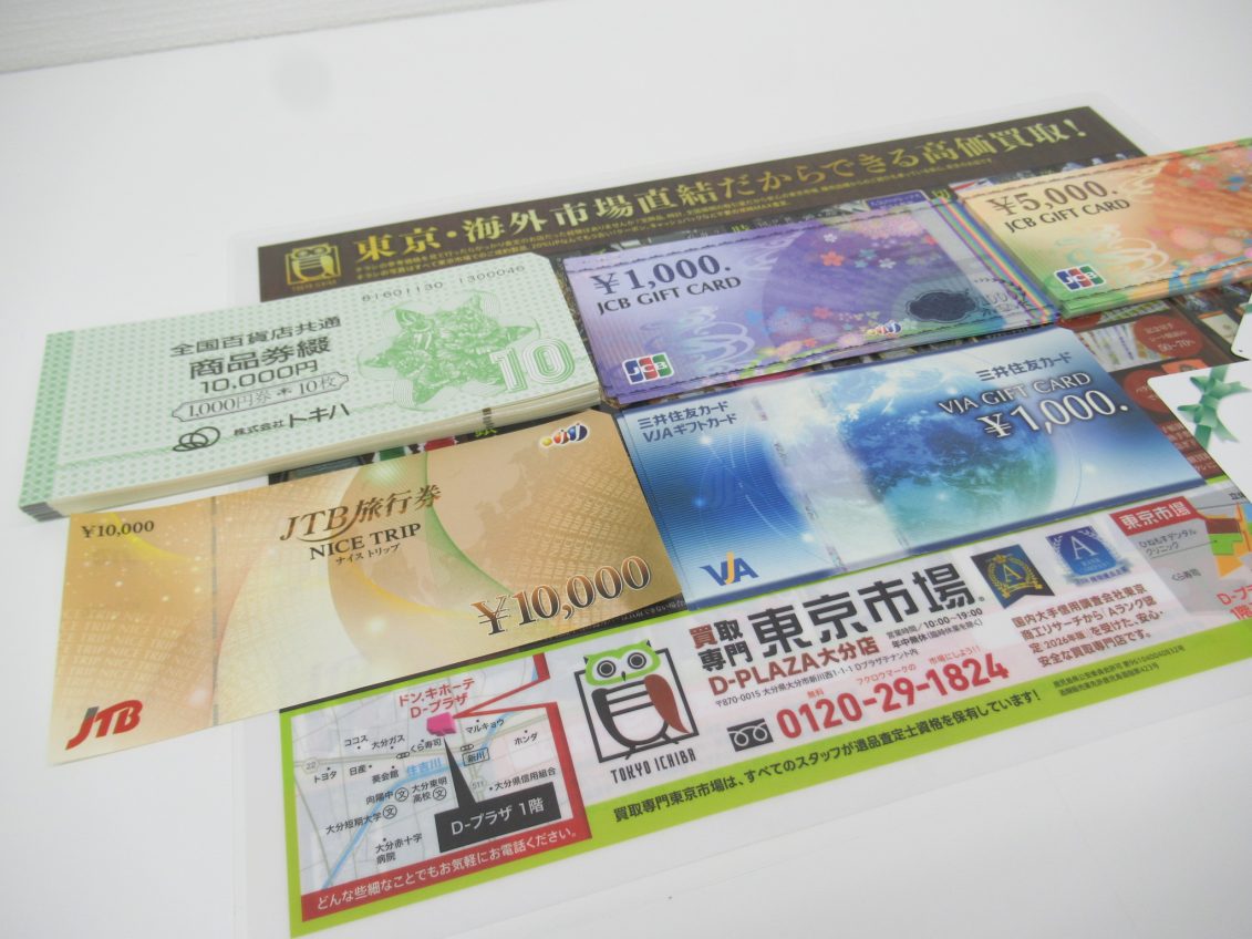 大分市 買取専門 東京市場 Dプラザ大分店 金券 商品券 ギフトカード 買取しました。