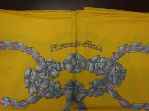 シルクツイル製の90cm四方のスカーフ「カレ」。手作業で施される