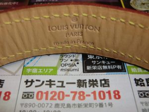 ヌメ革製のヴィトンロゴの入った可愛いドックタグがアクセント