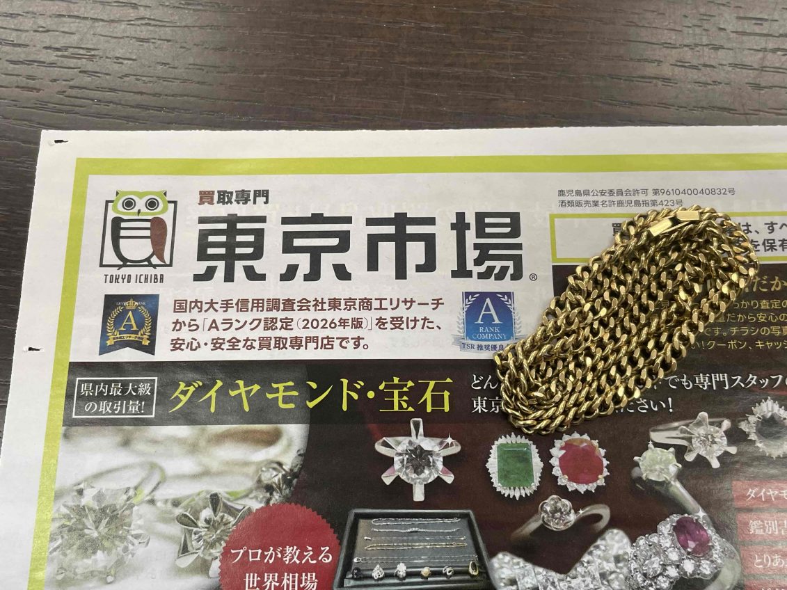 鹿児島市 買取専門 東京市場 サンキュー新栄店 貴金属 金 喜平ネックレス 買取しました。