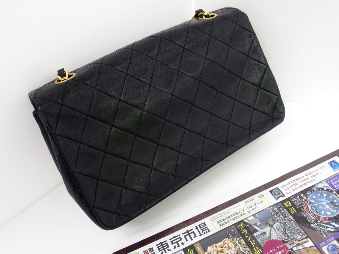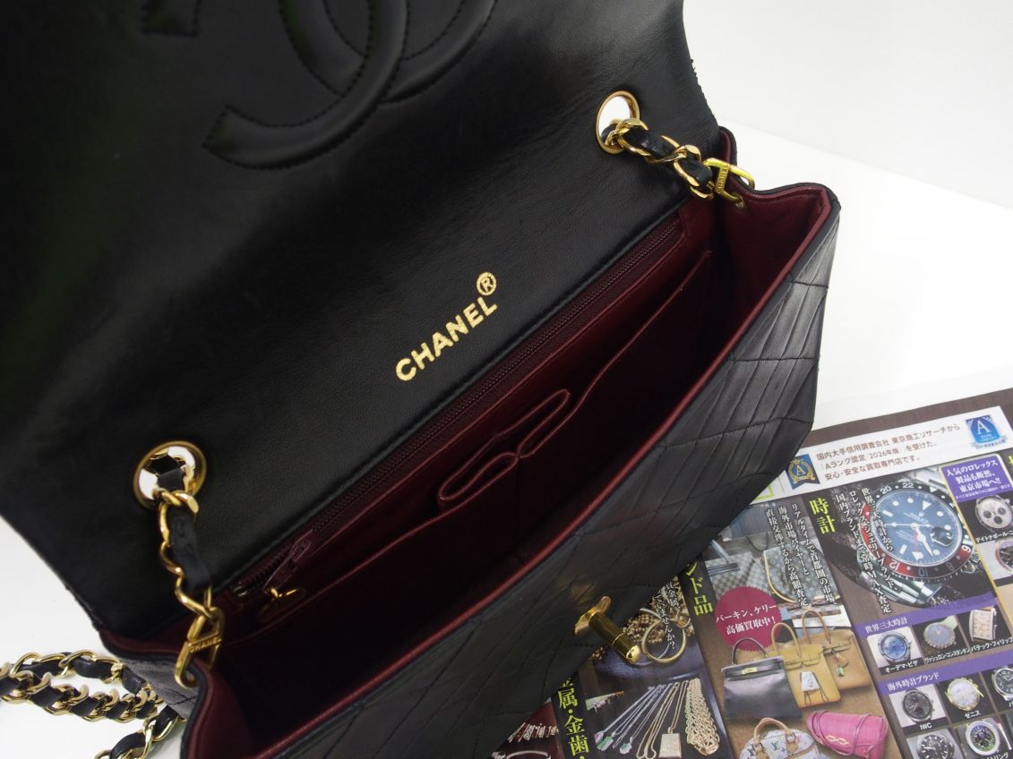 シャネルを象徴するキルティングデザインとチェーンストラップが特徴で、