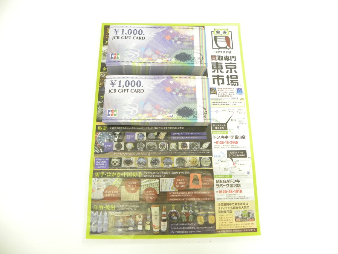 金沢市内 買取専門 東京市場 メガドンキラパーク金沢店 金券 ギフトカード 買取しました。