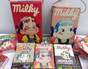 両面にペコちゃん、ポコちゃんが描かれていますが、