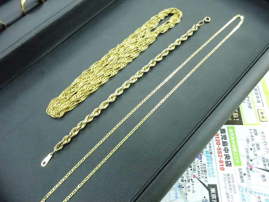 鹿児島市内 買取専門 東京市場 鹿児島中央店 貴金属 金 ネックレス リング 買取しました。