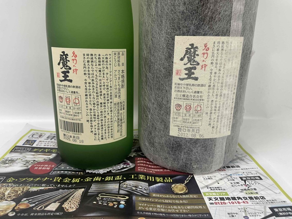 焼酎です。今回は魔王をお買取りさせていただきました。フルーティーで上品