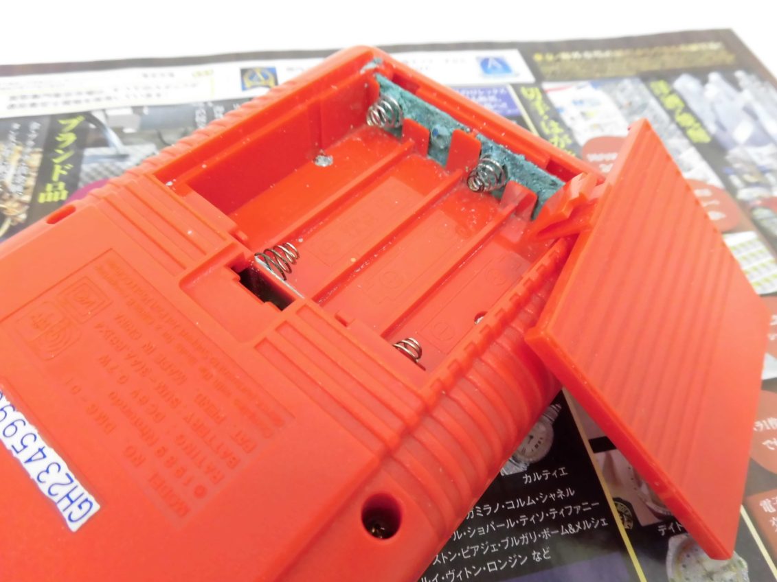 ご自宅にあったゲームボーイ。電池部分が劣化していて