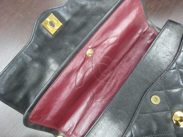 シャネルのレザーとのマッチングは秀逸でバッグの耐久性を高めており、斜めにステ