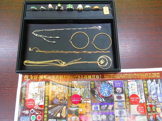 金、プラチナ製のリング、ネックレス、ピアスなどなど。