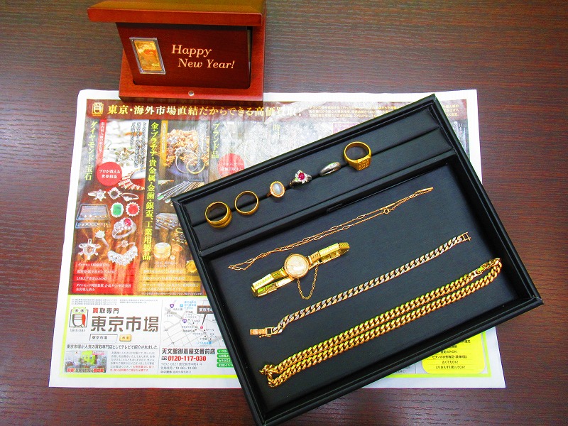 東京市場 天文館 御着屋交番前店 貴金属 金 プラチナ 製品 買取しました。