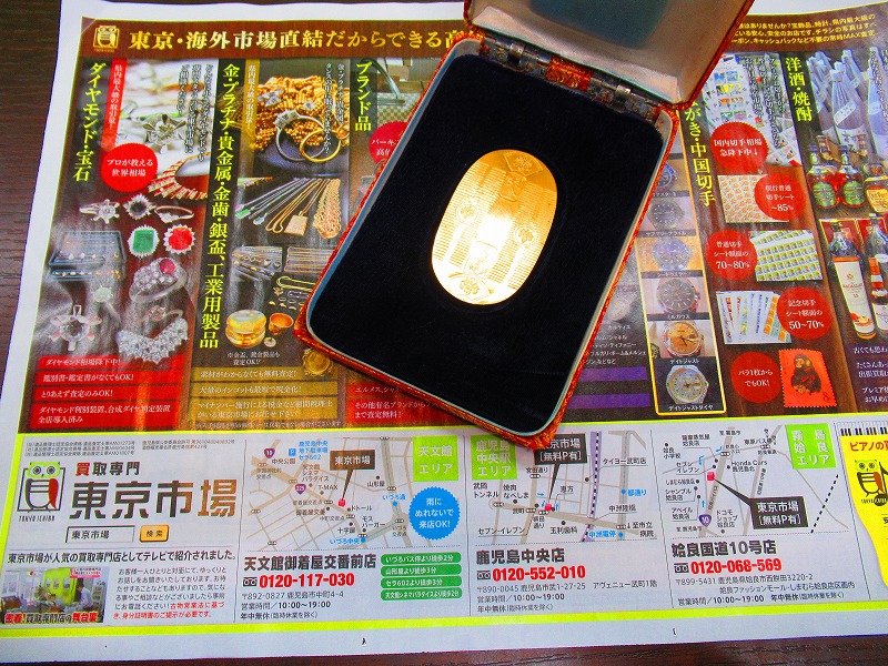 東京市場 天文館 御着屋交番前店 貴金属 金製品 純金小判 買取しました。