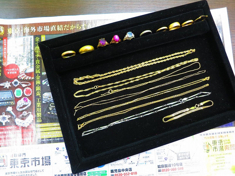 東京市場 天文館 御着屋交番前店 貴金属 金 プラチナ 製品 買取しました。