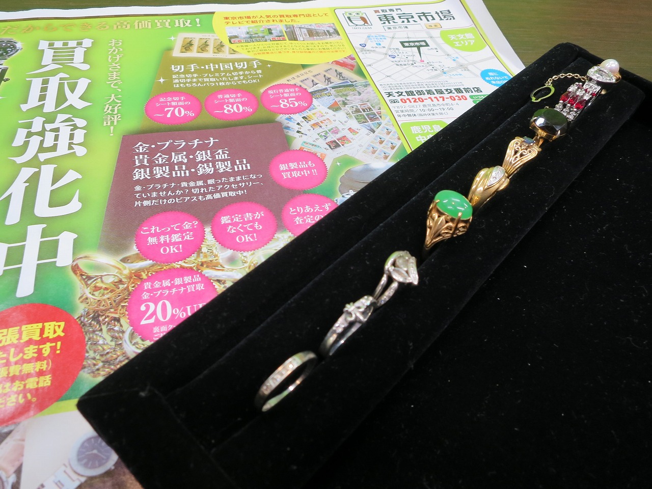 東京市場 天文館 御着屋交番前店 貴金属 金 プラチナ 製品 買取しました。