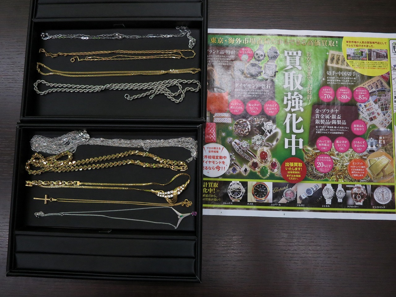 金、プラチナのネックレス多数。
