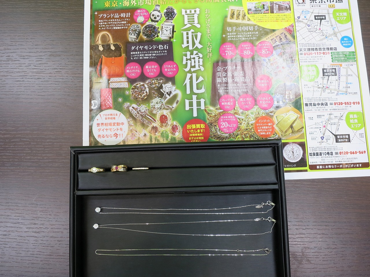 東京市場 天文館 御着屋交番前店 貴金属 金 プラチナ ダイヤモンド製品 買取しました。