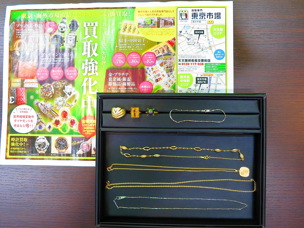 東京市場 天文館 御着屋交番前店 貴金属 金 プラチナ 製品 買取しました。