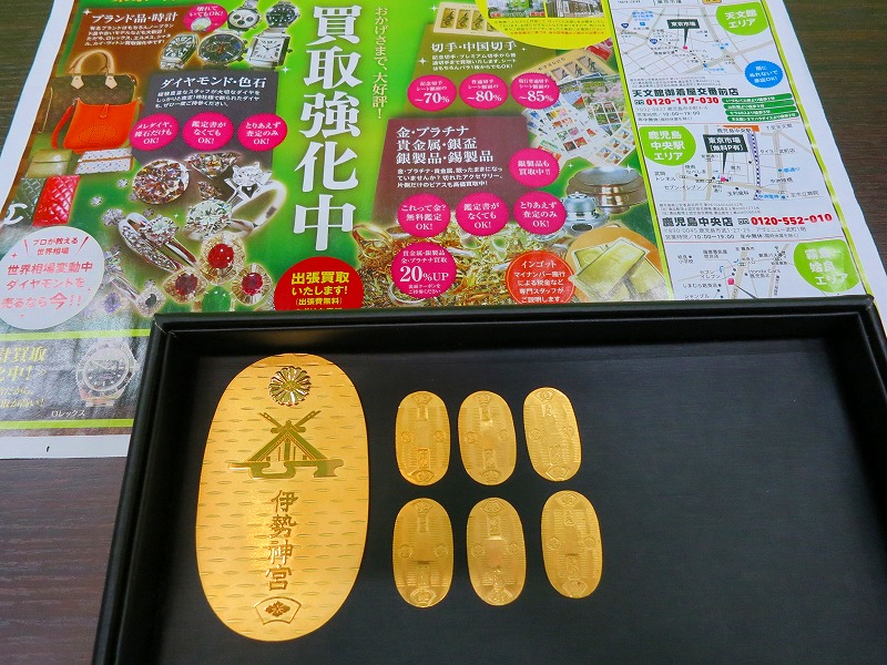 三越謹製 伊勢神宮 純金小判、レプリカの純金小判は先日のものと同じもので1枚3gです。