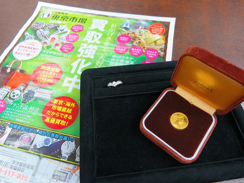 東京市場 天文館 御着屋交番前店 貴金属 金貨 プラチナダイヤモンドリング 買取しました。