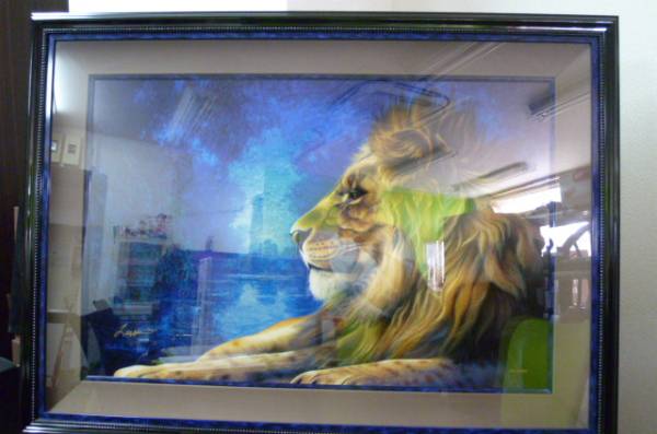 大迫力のライオン、残念ながら保証書、箱がありませんが、迫力満点の貴重なリトグラ