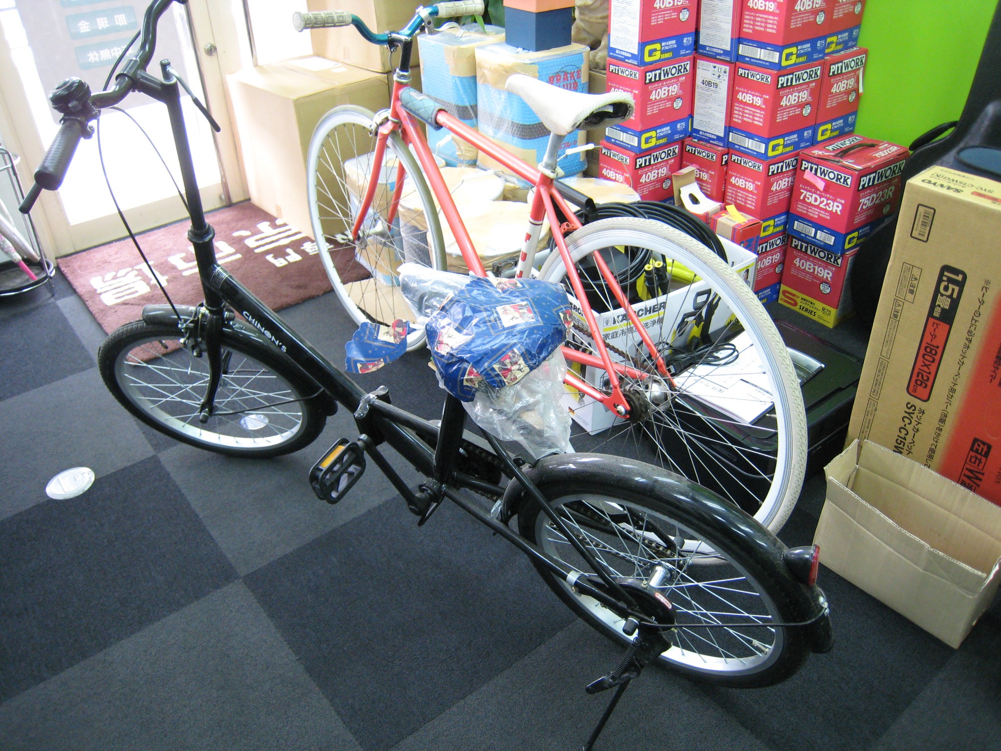 チノンズの折り畳み自転車は景品でいただいたものだそうです。
